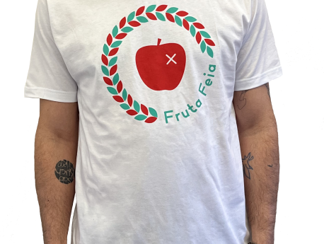 White cotton T-shirt. Produced, sewn and screen-printed in Portugal, with the Fruta Feia logo on the front. Available in sizes M, L and XL.