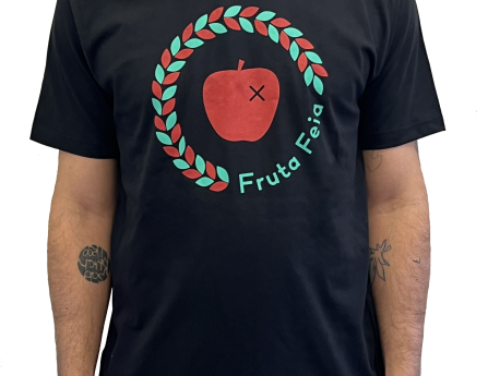 Black cotton T-shirt. Produced, sewn and screen-printed in Portugal, with the Fruta Feia logo on the front. Available in sizes M, L and XL.
